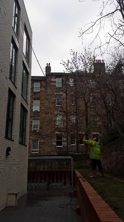 Utilising our top of the line Water Fed Pole pure water system, we can safely clean your windows from the ground, but we also have access to fully trained Rope Access team and trained IPAF operators for any awkward or high level window cleaning that may be required. Offering this service throughout Glasgow, we can organise a frequent maintenance clean, a one off window clean, or tailor a package to suit your needs.