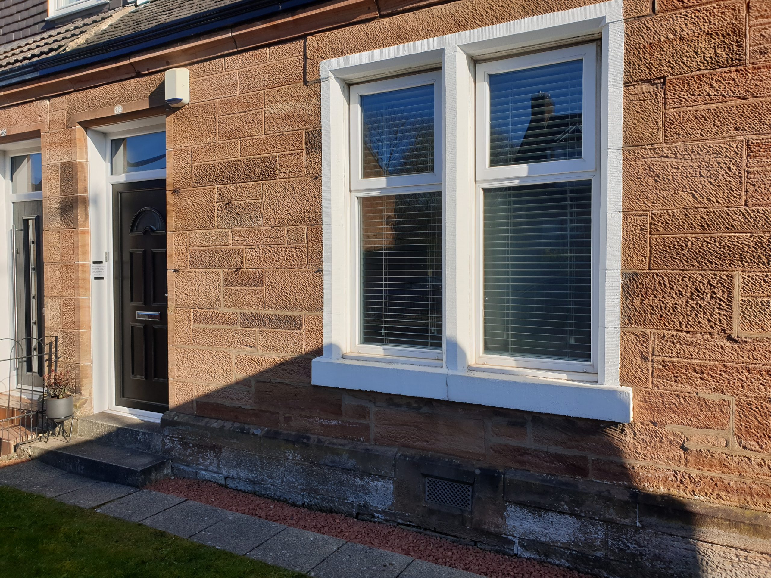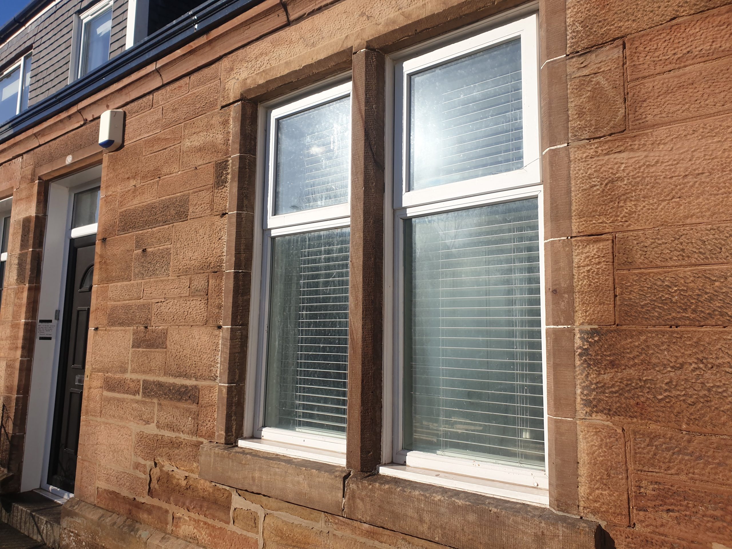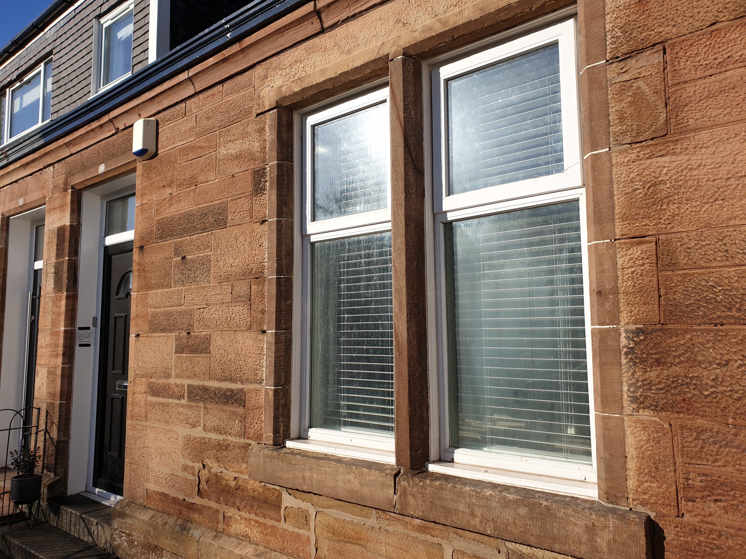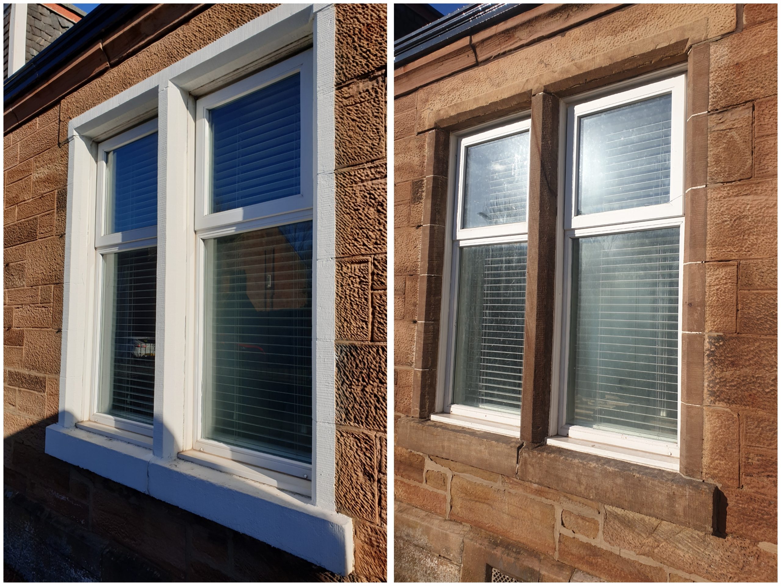 We were contacted by the homeowner for our paint removal services Glasgow, and were tasked with removing years of paint from this sandstone window surround. Our specialist chemical paint softener was used to loosen and soften the multiple layers of paint, before lowering the pressure, and upping the temperature on our pressure washer. The pressure was kept reasonably low so as not to damage the sandstone, and multiple applications of chemical were required due to the many layers of paint (6 in all!)